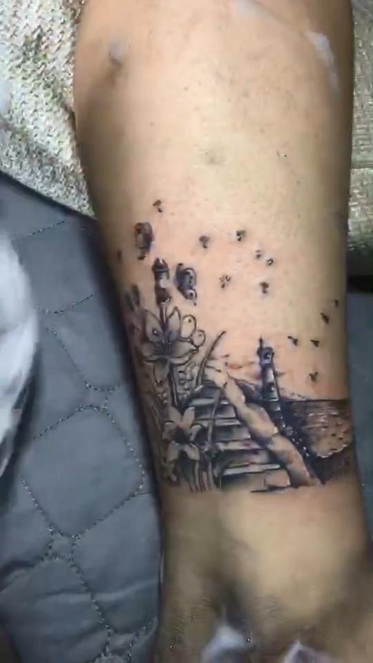 小腿素花灯塔纹身图案已完成视频